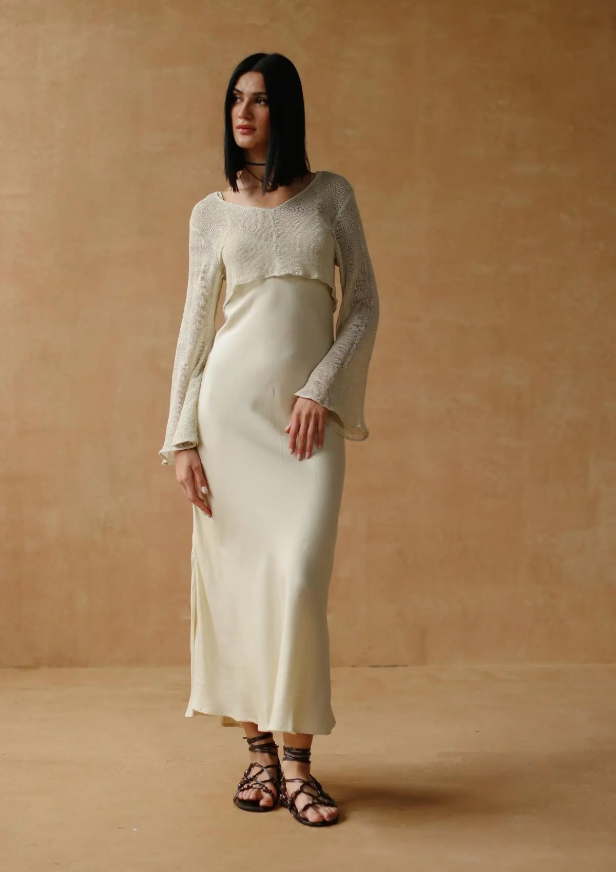 AKAIA BIAS SLIP DRESS - NATURAL