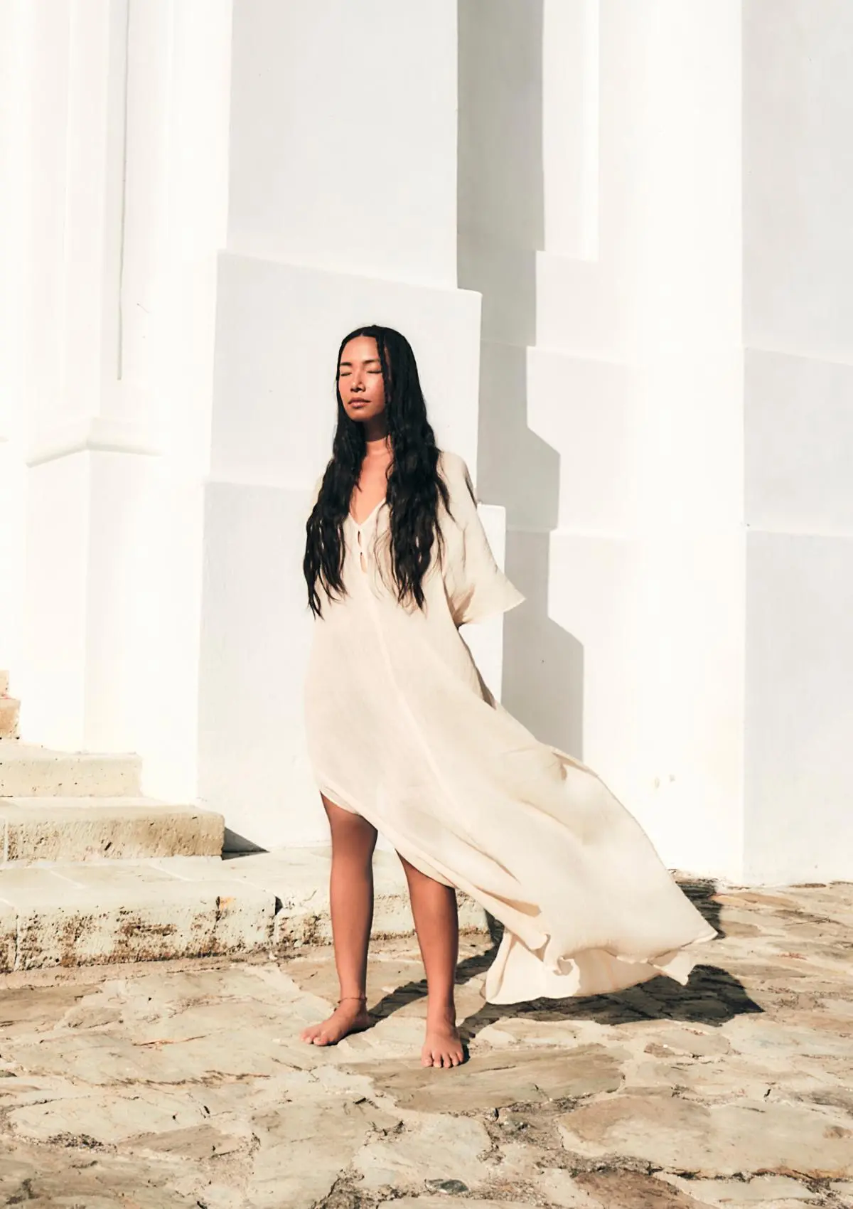 The Maxi Kaftan Dress blends comfort and sophistication effortlessly. Designed for a relaxed fit, it drapes beautifully, allowing for ease of movement and a graceful silhouette.