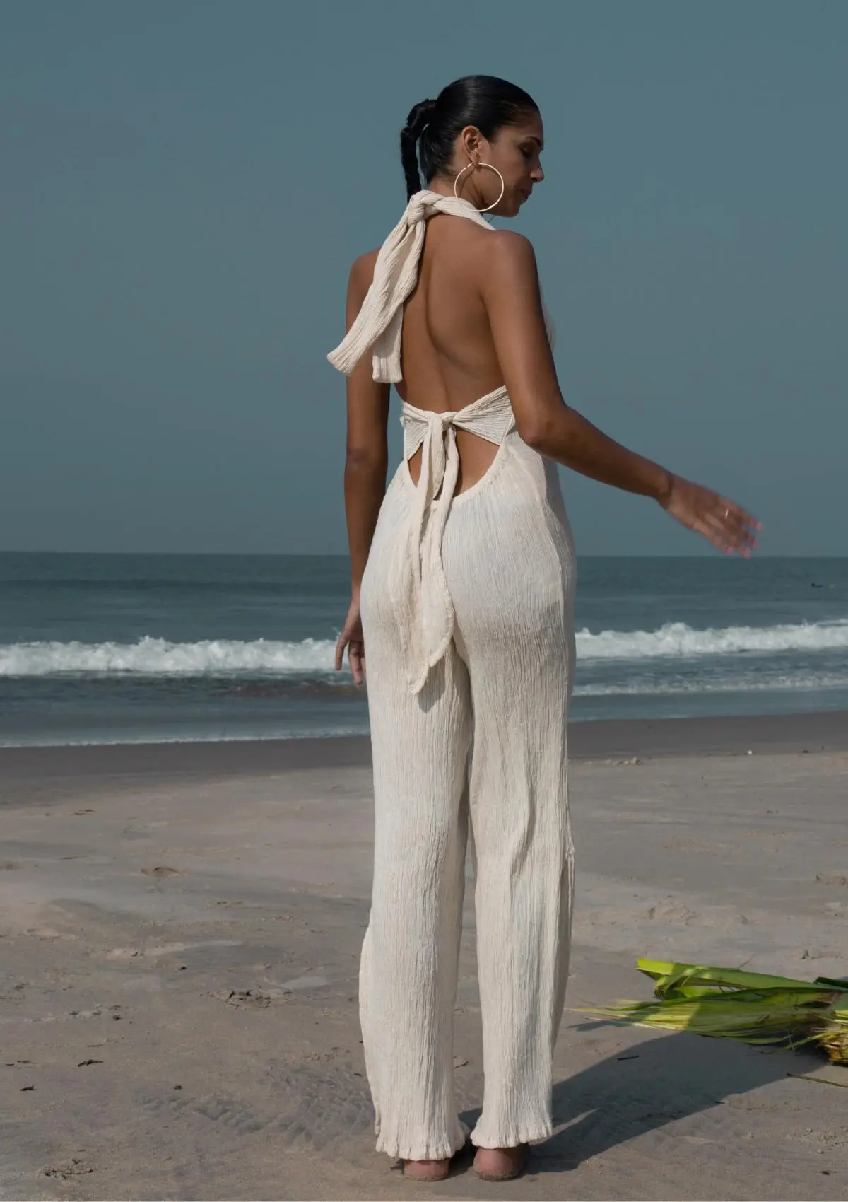Magical fibers for radiant beings. This gorgeous summer halter jumpsuitĀ made from beautiful organic cotton will take youĀ from day to night with a flared hemline and leg slits from just below the knee. Sensual and timeless this garment is a head turner that you will cherish for years to come. With a unique tie back detail this halter-neck jumpsuit has a beautiful silhouette with a supportive bustĀ halter-neck fitting.Ā